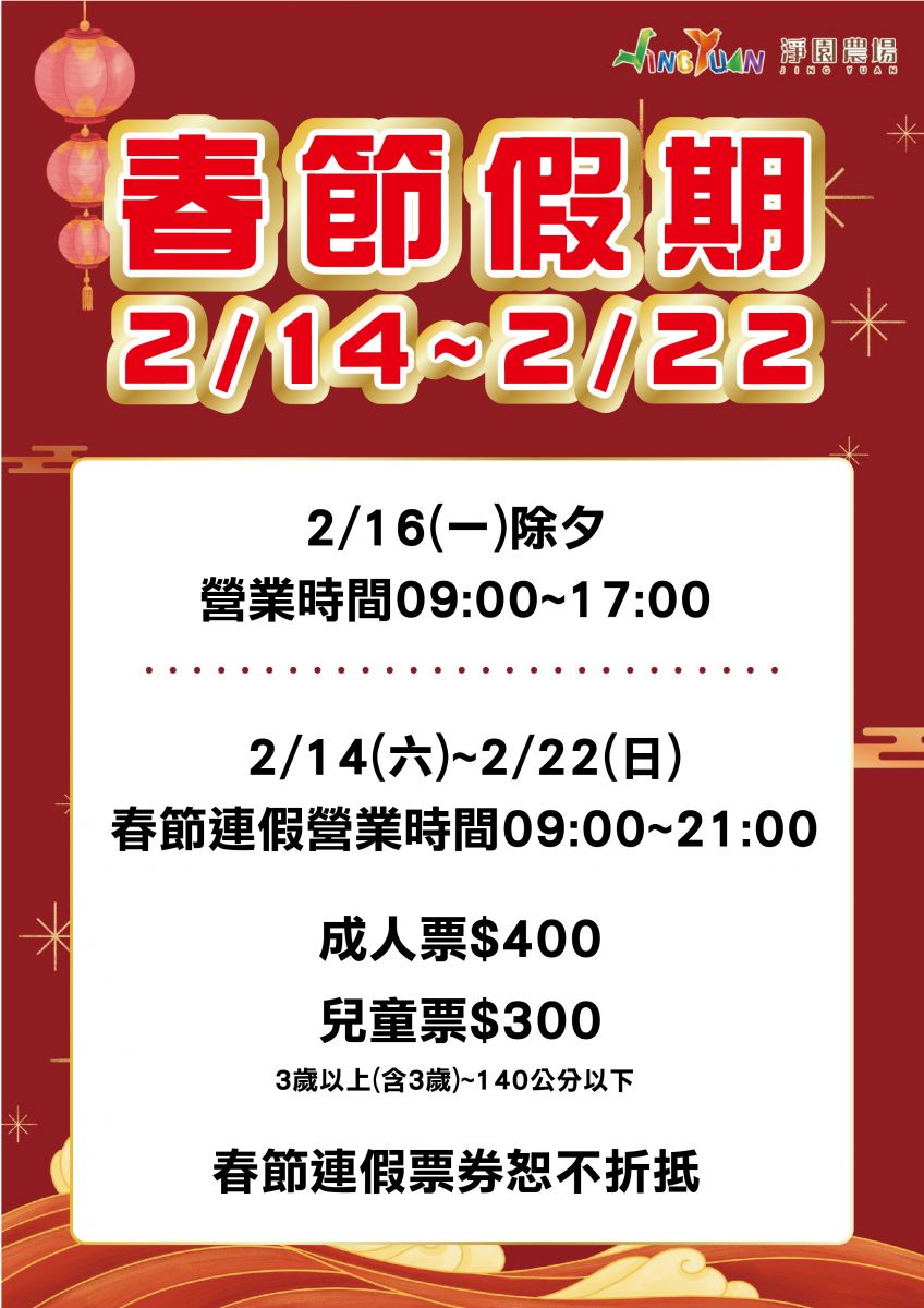 春節營業時間&票價