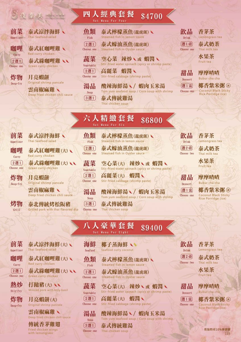 2. 母親節線上訂位完成後,請於3天內完成【訂金全額付款】,以上價格均須加收10%服務費。
